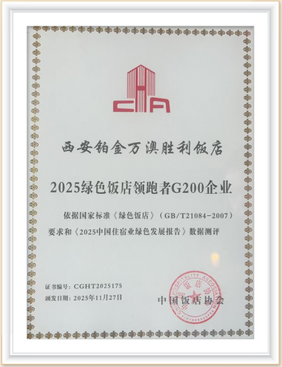 此次獲選,不僅是對鉑金萬澳·勝利飯店綠色發(fā)展成果的高度認可,更彰顯了其在推動酒店業(yè)綠色化、可持續(xù)發(fā)展進程中的引領力與實干精神。飯店將以此次榮譽為新起點,持續(xù)深化管理創(chuàng)新,鞏固和擴大綠色發(fā)展成果,積極探索行業(yè)綠色轉型新路徑,為廣大賓客提供更健康、更舒適、更環(huán)保的旅居體驗。